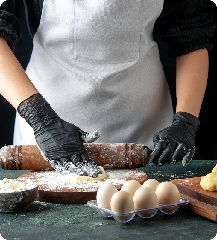 Food-safe gloves that maintain hygiene and prevent contamination in handling and processing.