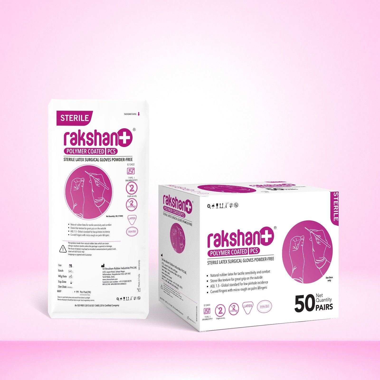 Premium powder-free surgical latex with polymer coating for easy donning.